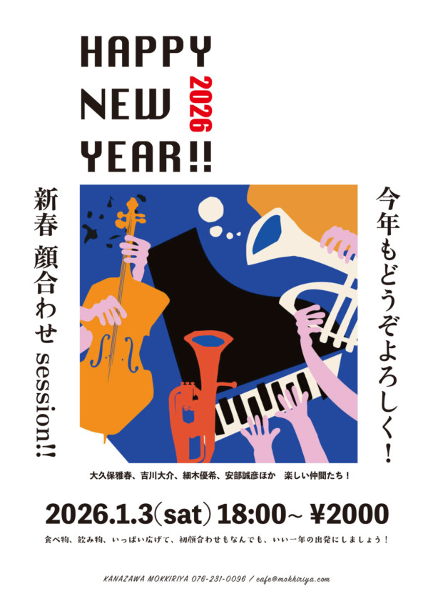 富山から帰省中の吉川さんを加えて、お正月の顔合わせセッション、今年もどうぞよろしく!
